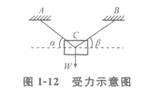 一個(gè)物體,重量為W,通過(guò)兩條繩索AC和BC吊著,計(jì)算AC、BC拉力的步驟為:首先取隔離體,作出隔離體受力圖;然后再列平衡方程,∑X=0、∑Y=0,求未知力T1、