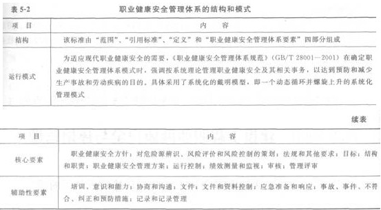 職業(yè)健康安全管理體系的結(jié)構(gòu)和模式見表5―2。