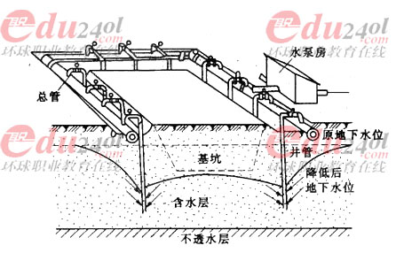 圖17.2輕型井點(diǎn)降水布置示意圖