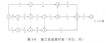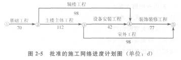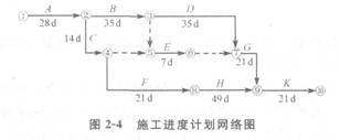 某建筑工程施工進(jìn)度計(jì)劃網(wǎng)絡(luò)圖如圖2―4所示。