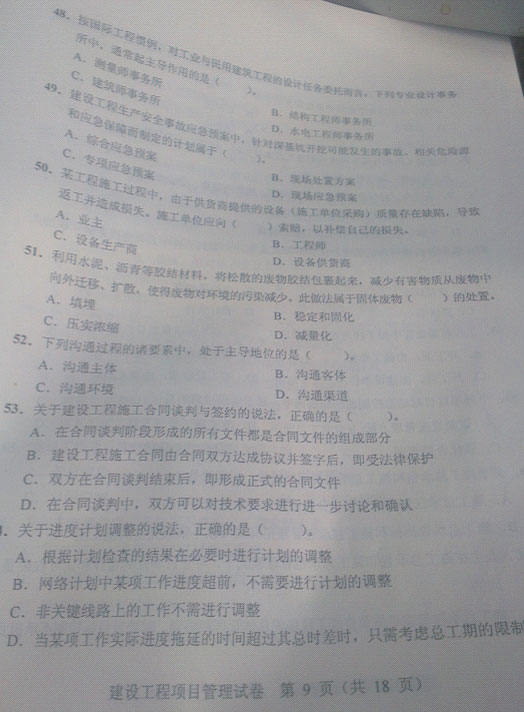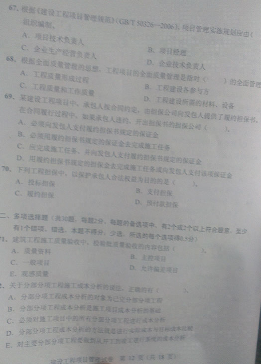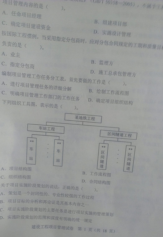 2012年一級建造師建設(shè)工程項(xiàng)目管理真題(圖片完整版)