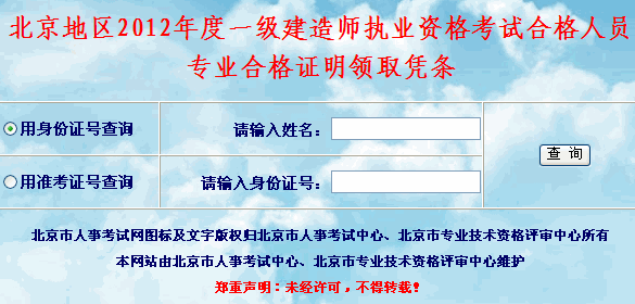 北京2012年一級(jí)建造師合格人員資格證書領(lǐng)取憑條