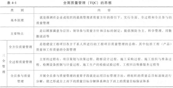 全面質(zhì)量管理(TQC)的思想見表4-1。