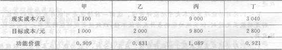 2.某項(xiàng)目的建筑工程可劃分為甲、乙、丙、丁四個(gè)功能區(qū)域,下表是各功能區(qū)域現(xiàn)實(shí)成本和目標(biāo)成本,根據(jù)功能價(jià)值,應(yīng)作為價(jià)值工程活動(dòng)首選對(duì)象的是()。[2010]