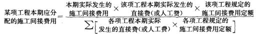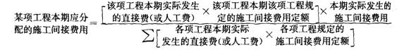 在實際核算工作中,對于施工間接費用的分配方法往往是:先計算本期實際發(fā)生的施工間接費用對該施工間接費用定額計算的施工間接費用的百分比,再將各項工程按定額計算的;