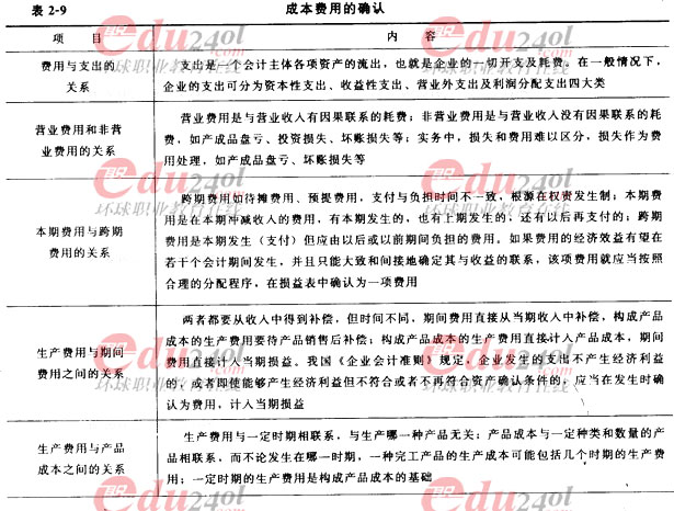成本費用的確認(rèn)見表2-9。