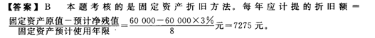 【答案】C本題考核的是雙倍余額遞減法的概念。雙倍余額遞減法是在不考慮固定資產(chǎn)預(yù)計凈殘值的情況下,根據(jù)每年年初固定資產(chǎn)凈值和雙倍的直線法折舊率計算固定資悶