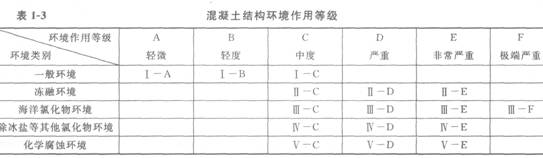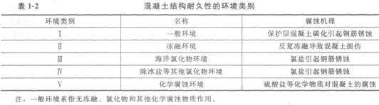 混凝土結(jié)構(gòu)耐久性的環(huán)境類別見(jiàn)表1―2。