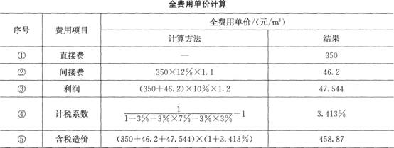2.計算新的全費用單價見下表所列。