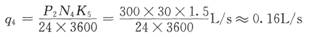 (6)總用水量的計算:由于q1+q2+q3+q4一(27.34+0+0.14+0.16)1/s=27.641/s>qs=101/s則總用水量Q―q1+q2-t-q。+q4----27.641/s