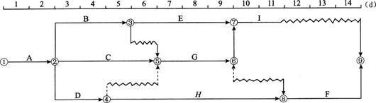 83.某分部工程雙代號時標網(wǎng)絡計劃如下圖所示,該計劃所提供的正確信息有( )。