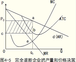 完全壟斷企業(yè)和完全競爭企業(yè)的成本曲線是相同的。完全壟斷企業(yè)根據(jù)邊際成本等于邊際收益的原則確定了均衡產(chǎn)量,根據(jù)這個產(chǎn)量就可以確定均衡價格。