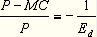 完全壟斷企業(yè)定價的一個簡單法則:在邊際成本上的加價額占價格的比例應(yīng)該等于需求價格彈性倒數(shù)的相反數(shù)。