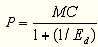 即:一個壟斷企業(yè)索取的價格超過邊際成本的程度,受制于需求價格彈性。彈性低,壟斷者可以確定較高的價格;隨著需求價格彈性增高,則價格將逐漸接近于邊際成本。