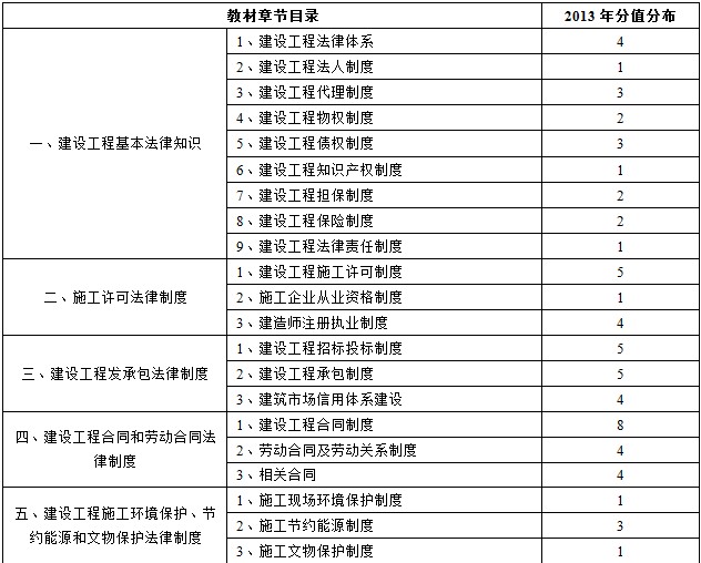 下面,我們不妨具體看看2013年法規(guī)考題的分值分布,做一下詳細(xì)分析。