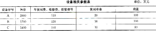某工程需購(gòu)置某設(shè)備一臺(tái),經(jīng)市場(chǎng)調(diào)查有三種型號(hào)設(shè)備滿足要求,相關(guān)參數(shù)如下表所示(采購(gòu)當(dāng)年貸款復(fù)利利率為8%):