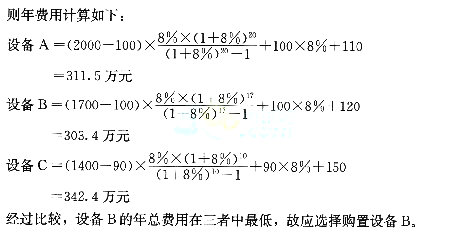解析:設(shè)備采購(gòu)方案比選的直接依據(jù)就是各方案設(shè)備年總費(fèi)用值。