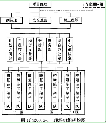 現(xiàn)場組織機構(gòu)示例見圖1c420013―1。