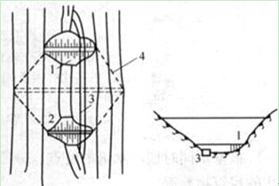 1―水工建筑物軸線;2―上游圍堰;3―下游圍堰;4―導(dǎo)流明渠