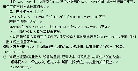 1Z101062 設備租賃與購買方案的比選分析