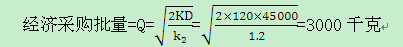 根據(jù)經(jīng)濟訂貨批量的計算公式:Q2=2KD/K2