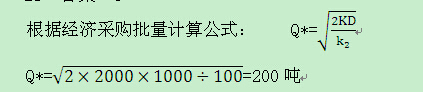 注:本題在計算儲存成本時與第15題有所不同。第15題中僅表明的是“靜態(tài)”儲存發(fā)生的成本,而本題中由于“每次進貨量5萬噸”,所以只對這5萬噸發(fā)生儲存成本,并且考慮到存貨的“動態(tài)”使用,故需要除以2來計算儲存成本。