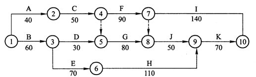 關(guān)鍵線(xiàn)路為:①→②→④→⑦→⑩(或:A→C→F→I)。