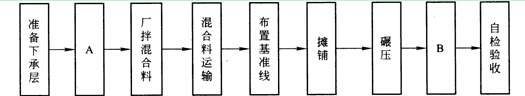 2.A――施工放樣(或:測(cè)量、或放線(xiàn));B-一養(yǎng)生(或養(yǎng)護(hù))。