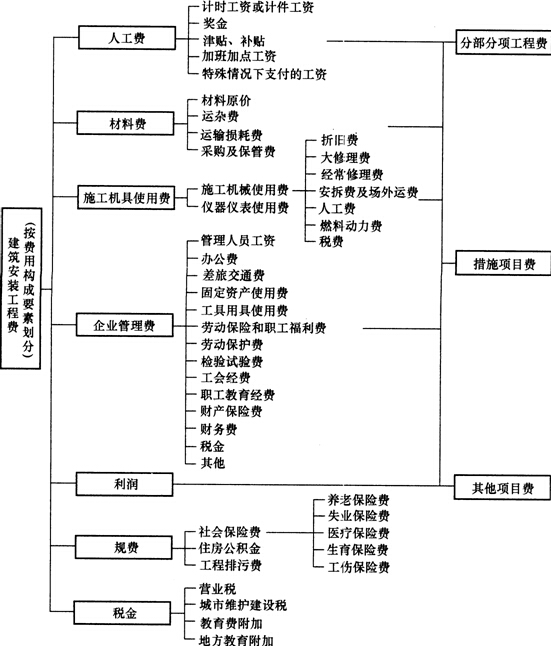 圖1Z202023-1 按成本構(gòu)成要素劃分的建筑安裝工程費(fèi)用項(xiàng)目組成