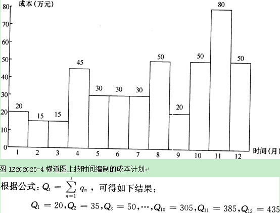 2.在橫道圖上按時間編制成本計劃,如圖1Z202025-4所示。