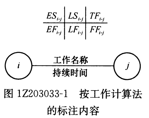 按工作計算法計算網(wǎng)絡(luò)計劃中各時間參數(shù),其計算結(jié)果應(yīng)標注在箭線之上,如圖1Z203033-1所示。
