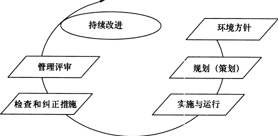 圖1Z205011-4所示給出了環(huán)境管理體系的運行模式,該模式為環(huán)境管理體系提供了一套系統(tǒng)化的方法,指導(dǎo)其組織合理有效地推行其環(huán)境管理工作。該模式是由“策劃、實施、檢查、評審和改進”構(gòu)成的動態(tài)循環(huán)過程,與戴明的PDCA循環(huán)模式是一致的。