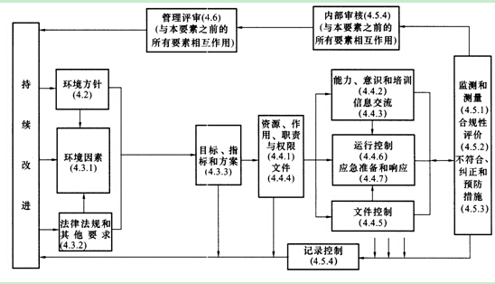 環(huán)境管理體系包括17個內(nèi)容要素,其具體內(nèi)容及相互關(guān)系如圖1Z205011-5所示。