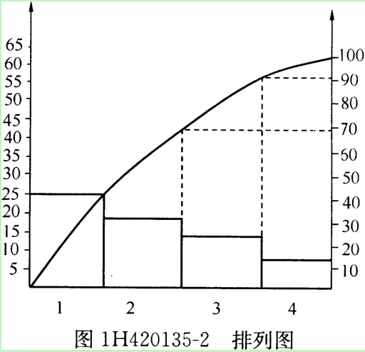 3.針對事件2的質(zhì)量問題,建立統(tǒng)計(jì)表(表1H420135-2),畫出排列圖(圖1H420135-2)。