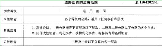 4.制備乳化瀝青用的基質(zhì)瀝青,對(duì)高速公路和一級(jí)公路,宜符合表1B412022―2道路石油瀝青A、B級(jí)瀝青的要求,其他情況可采用C級(jí)瀝青。