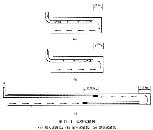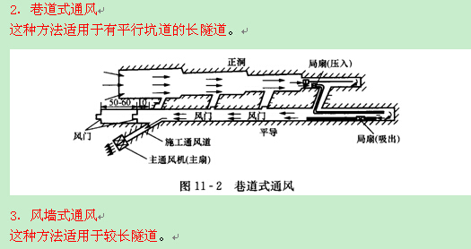 風(fēng)管式通風(fēng)的優(yōu)點(diǎn)是設(shè)備簡單、布置靈活、易于拆裝,故為一般隧道施工采用。
