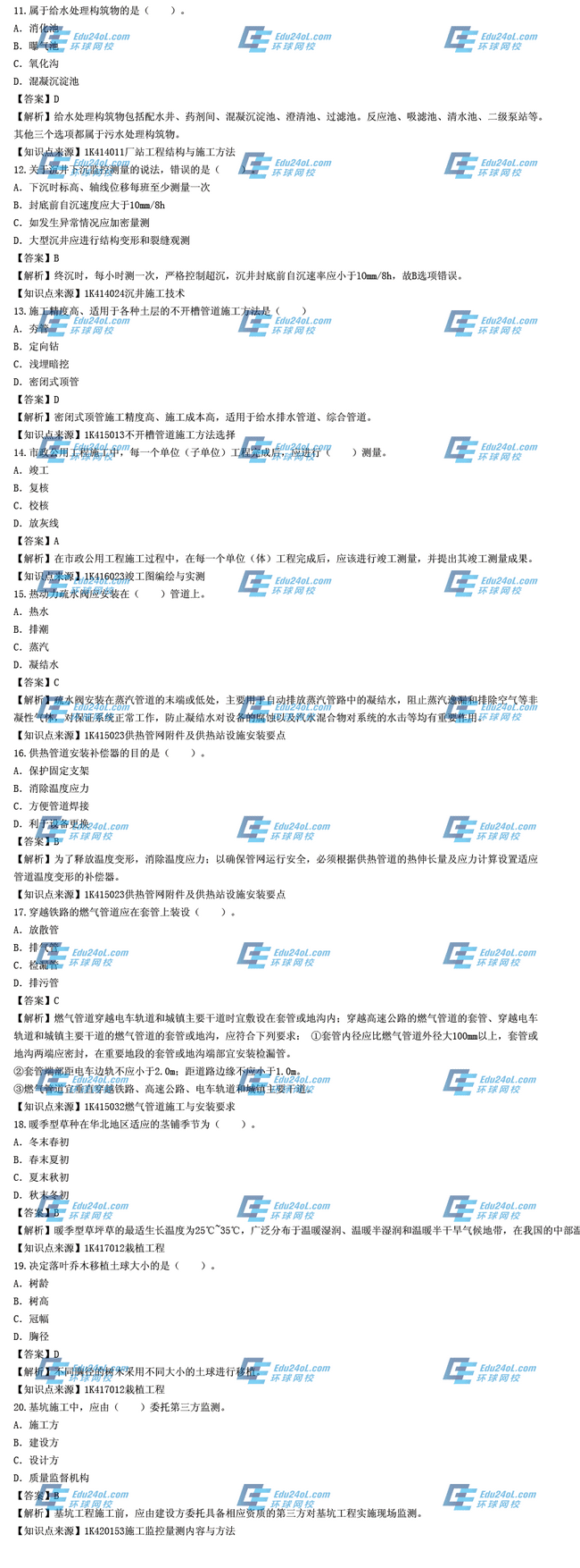 【摘要】一級建造師考試剛剛結(jié)束,各位考生一定非常關(guān)注本次考試的試題和參考答案等信息,環(huán)球網(wǎng)校一級建造師考試頻道為方便各位考生,特地為大家及時整理了本次一級建造師考試的真題,并附解析與參考答案,本文為2014年一級建造師《市政工程》真題解析(單選題),希望能夠?qū)Ω魑灰患壗ㄔ鞄熆忌兴鶐椭?。更多?fù)習(xí)資料及試題敬請關(guān)注環(huán)球網(wǎng)校一級建造師考試頻道,您可以按【ctrl鍵+D】手動收藏此頁面。