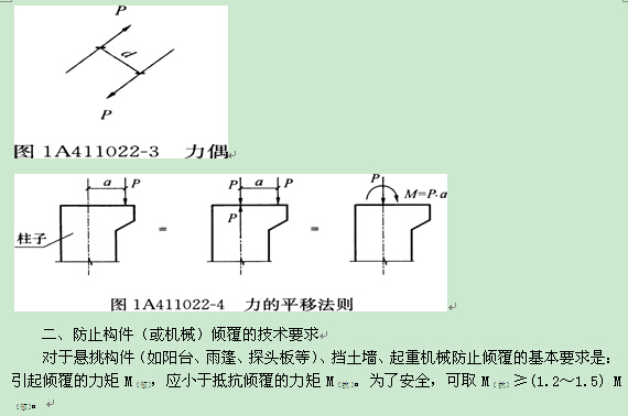 1A411022 防止結(jié)構(gòu)傾覆的技術(shù)要求
