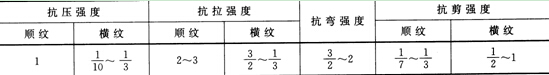 注:以順紋抗壓強度為1。