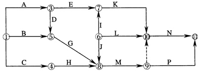【解析】圖中8、9兩個(gè)節(jié)點(diǎn)為終點(diǎn)節(jié)點(diǎn),沒有外向箭線,因而答案為B。