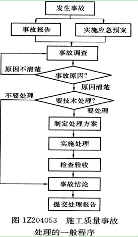 施工質(zhì)量事故處理的一般程序如圖IZ204053所示。