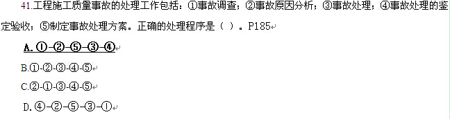 4-91施工質(zhì)量事故處理的要求:目標(biāo)、原因、處理方案、事后控制和過(guò)程安全。