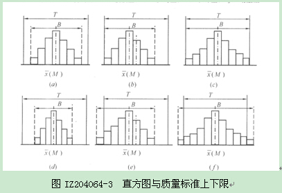 1.所謂位置觀察分析是指將直方圖的分布位置與質(zhì)量控制標(biāo)準(zhǔn)的上下限范圍進(jìn)行比較分析,如圖lZ204064-3所示。