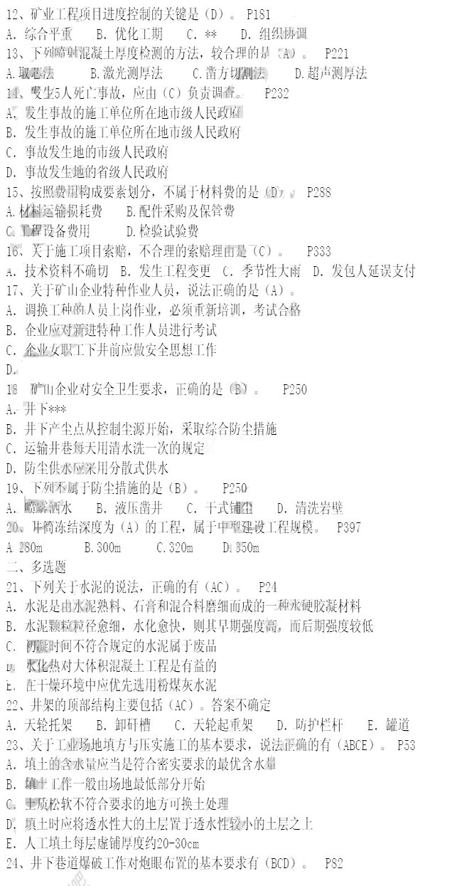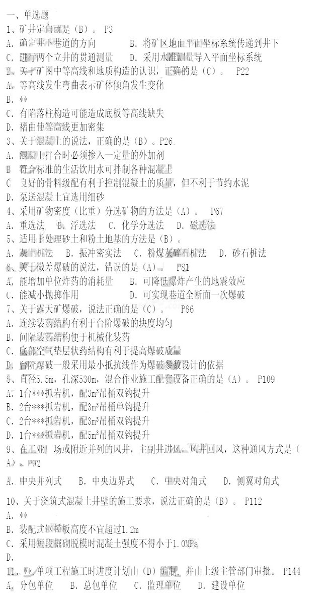 2014年一建《礦業(yè)工程》真題及答案(完整版)