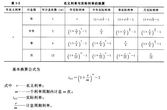 名義利率與實(shí)際利率的換算見(jiàn)表1-2。