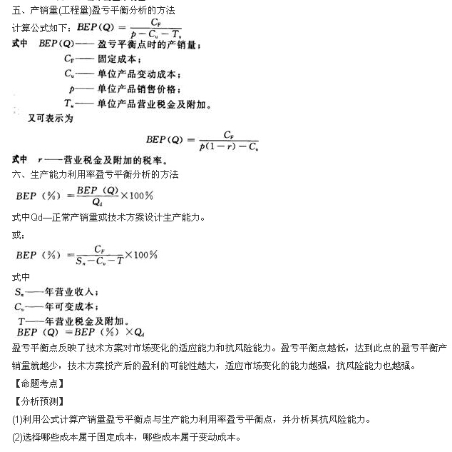 2015一建經(jīng)濟(jì)命題考點(diǎn):盈虧平衡分析方法