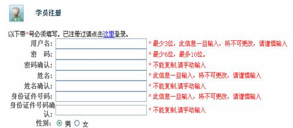 2、點擊【我已閱讀 進(jìn)入注冊】,進(jìn)入學(xué)員注冊頁面
