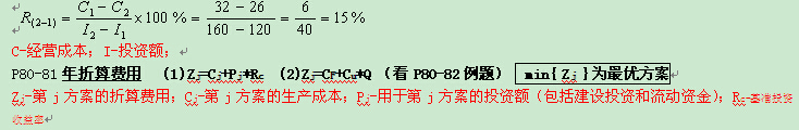 增量投資分析法公式:(P79例題。R>基準(zhǔn)投資收益率=可行,反之不可行)