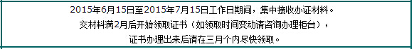 2015年6月15日至2015年7月15日工作日期間,集中接收辦證材料。