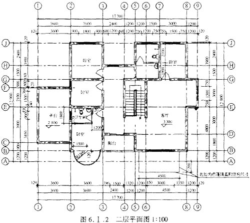 某別墅部分設(shè)計(jì)如圖6.I所示。墻體除注明外均為240mm厚。坡屋面構(gòu)造做法:鋼筋混凝土屋面板表面清掃干凈,素水泥漿一道,20mm厚l:3水泥砂漿找平,刷熱防水膏,采用20mm厚1:3干硬性水泥砂漿防水保護(hù)層;25mm厚1:1:4水泥石灰砂漿鋪瓦屋面。臥室地面構(gòu)造做法:素土夯實(shí),60mm厚C10混凝土墊層,20mm厚l:2水泥砂漿抹面壓光。臥室按面構(gòu)造做法:150mm現(xiàn)澆鋼筋混凝土樓板,素水泥漿一道,20mm厚l:2水泥砂漿抹面壓光。